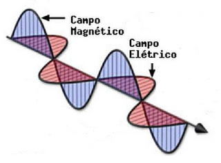 As ondas eletromagnéticas são dois campos perpendiculares entre si, que não é possível observar sem recorrer à ciência. A esses dois campos damos o nome de campo eléctrico (E) e campo magnético (H). Dá-se a designação de “onda” porque os campos (eléctricos e magnéticos) evoluem no espaço como se fossem uma onda (figura à direita).